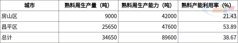 表3:2024年7月29日-2024年8月4日北京市各地熟料产能利用率