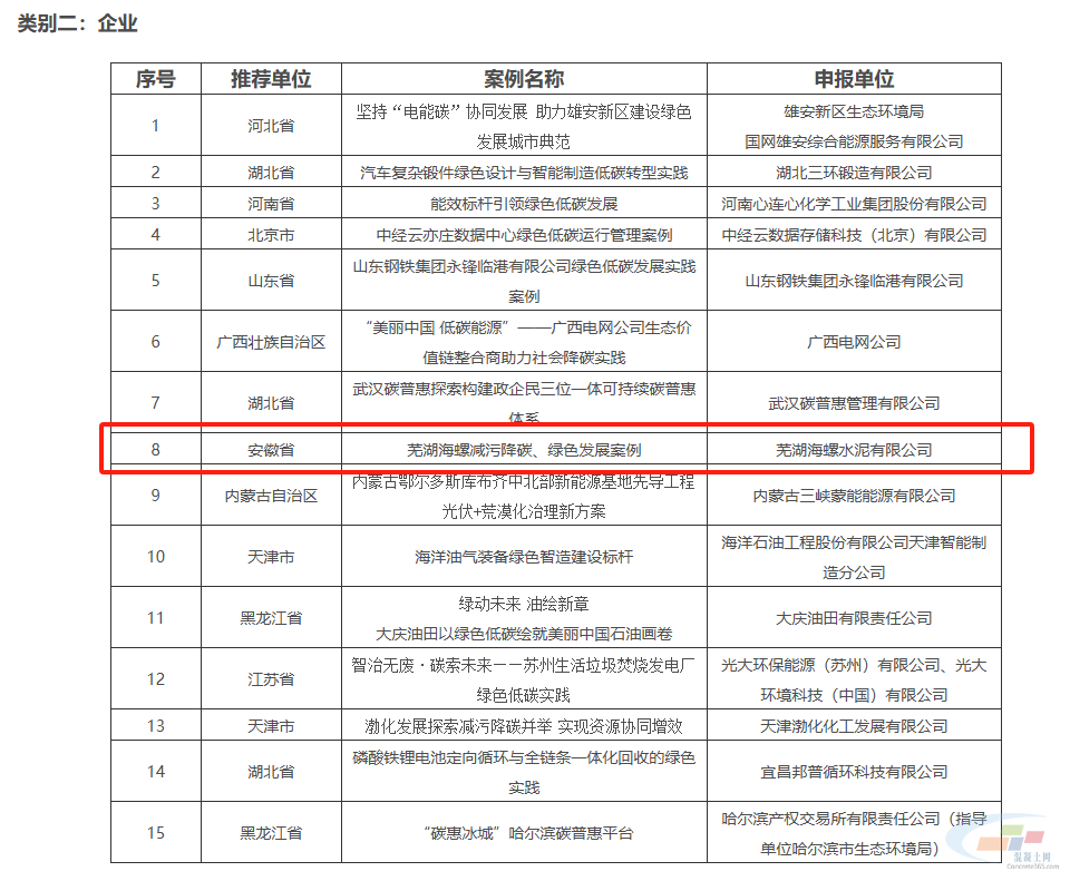 芜湖海螺水泥拟入选!生态环境部公示2025年绿色低碳典型案例征集活动获选名单!